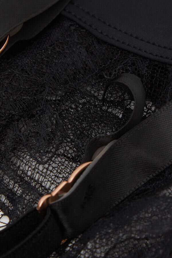 reggicalze in pizzo con fascia in microfibra. elegante dettaglio di un gioiello color oro rosa al centro.