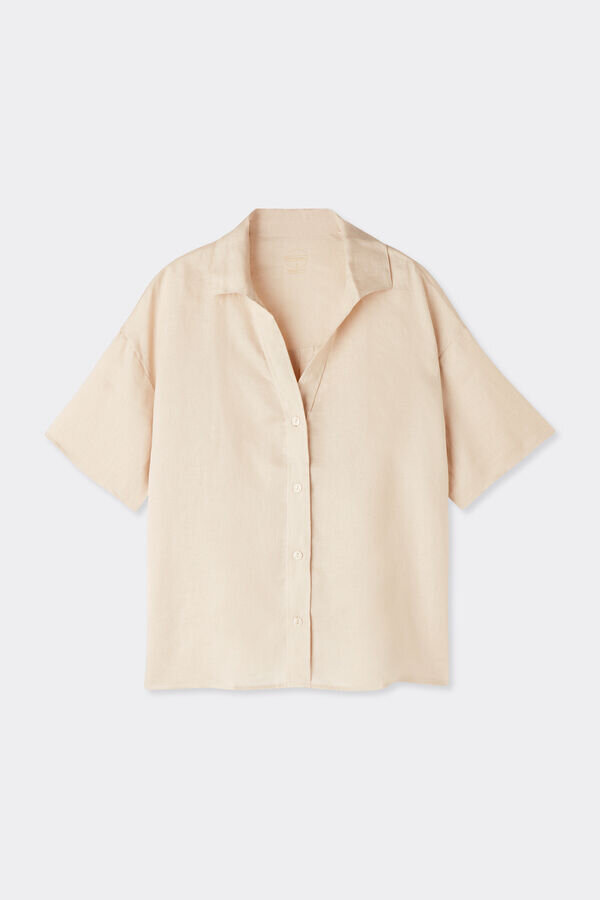 camicia a maniche corte in puro lino che può essere indossata sia come top con i jeans che come comoda maglia da pigiama. 100% lino