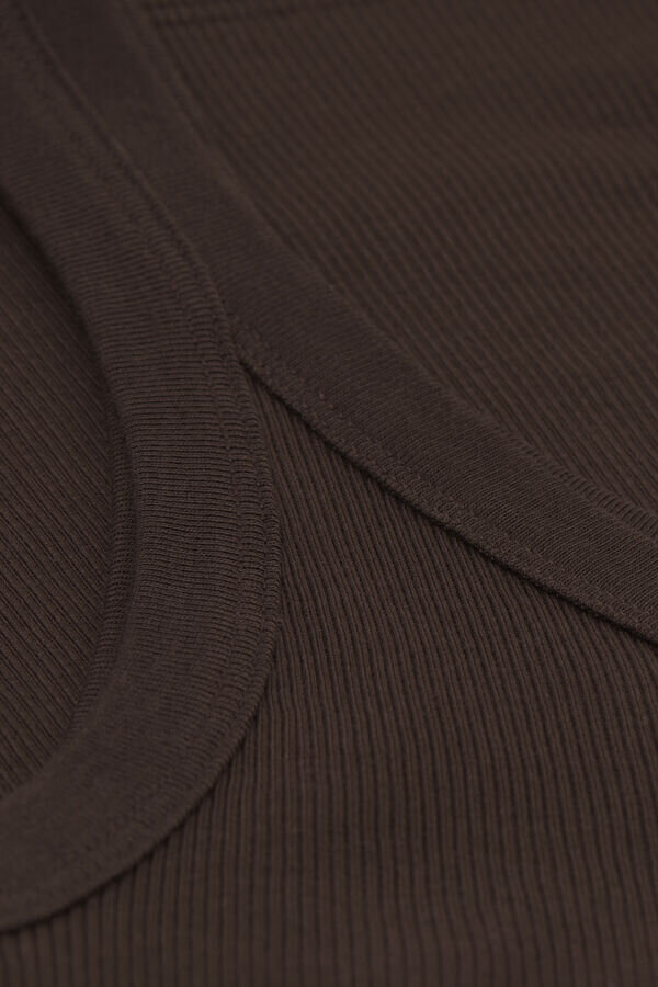 canotta con dorso a vogatore in cotone superiore a costine. può essere indossata sia come indumento intimo che da sola. morbida e confortevole. vestibilità aderente.