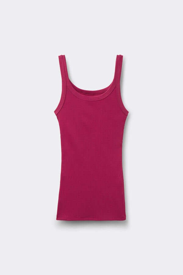canotta con dorso a vogatore in cotone superiore a costine. può essere indossata sia come indumento intimo che da sola. morbida e confortevole. vestibilità aderente.