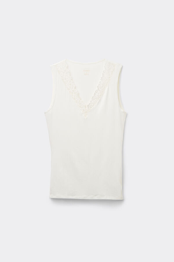 canotta in morbido modal con scollo rifinito da un elegante volant in pizzo con motivo floreale.