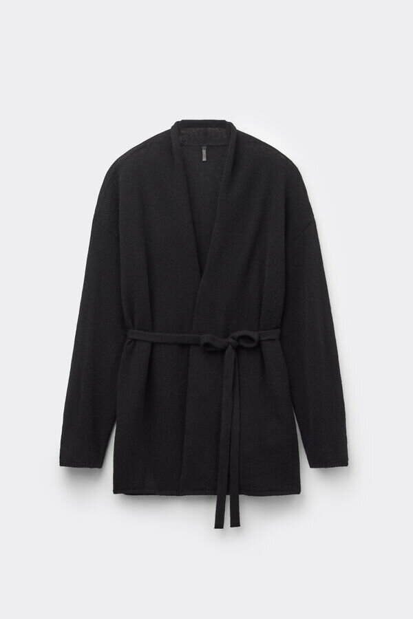 cardigan in puro cashmere lavorato a maglia dalla texture morbida e dalla vestibilità comoda e avvolgente. molto versatile, può essere indossato in vari modi grazie alla cintura. può essere utilizzato anche come caldo e avvolgente accappatoio.