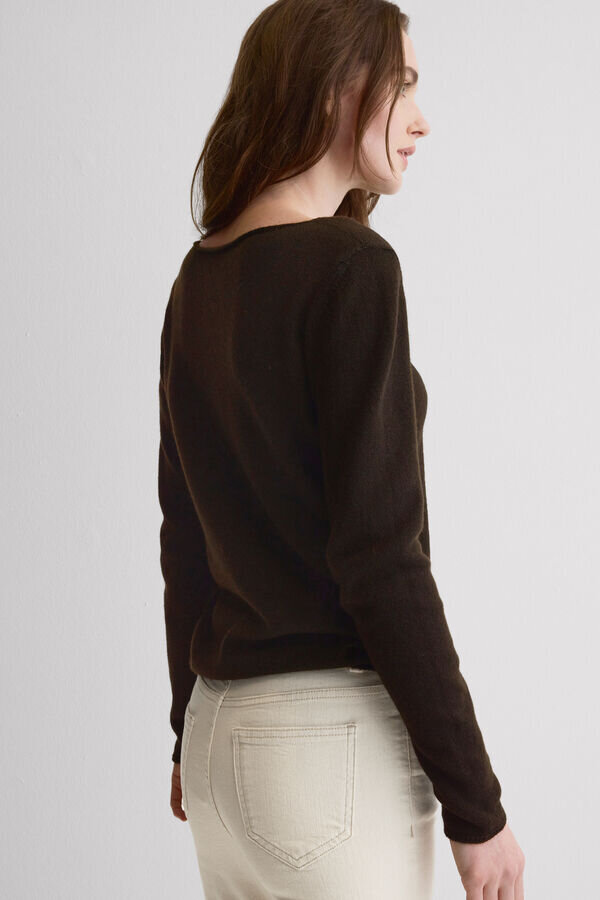 maglia in 100% cashmere dalla finitura liscia, con una texture morbida e una vestibilità aderente che esalta la silhouette naturale. piccola rifinitura a catena. perfetta da indossare sopra maglie in modal ultraleggero con cashmere per avvolgerti come un caldo abbraccio.