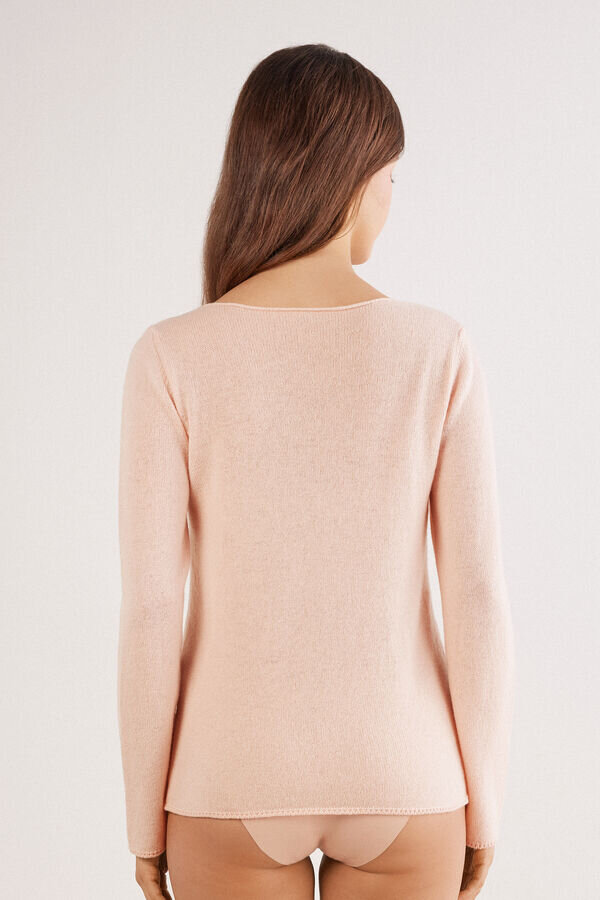 top in 100% cashmere dalla finitura liscia, con una texture morbida e una vestibilità aderente che esalta la silhouette naturale. piccola rifinitura a catena. perfetto da indossare sopra top in modal ultraleggero con cashmere per avvolgerti come un caldo abbraccio.