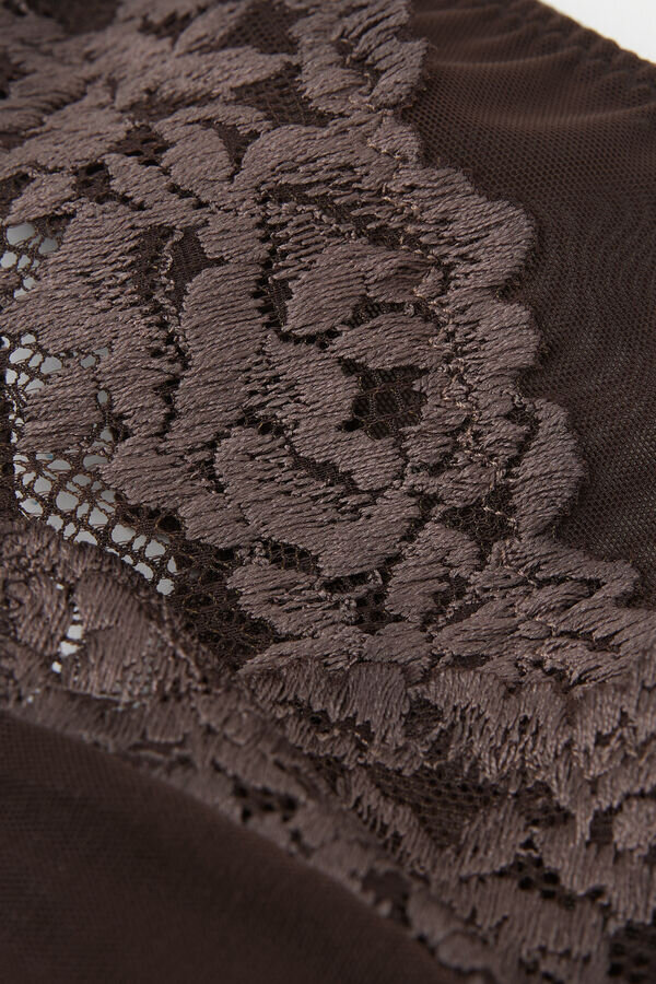 i nostri slip cheeky in pizzo sono una splendida combinazione di eleganza e comfort, perfetti per aggiungere un tocco di raffinatezza alla tua collezione di lingerie. realizzati in delicato tulle, questi slip Brazilian sono impreziositi da un bellissimo pizzo floreale, che crea una silhouette seducente e provocante che mette in risalto le tue curve. Le mutandine cheeky con bordi in pizzo presentano dettagli intricati che variano a seconda del colore: scegli il tono su tono per un look sottile e sofisticato o il pizzo a contrasto per un finish giocoso e accattivante. Il tassello interno in cotone al 100% garantisce comfort e traspirabilità, rendendo questi slip sbarazzini con bordi in pizzo ideali da indossare tutto il giorno. Progettati per adattarsi comodamente ai fianchi, questi slip offrono una copertura moderata con un tocco civettuolo, rendendoli perfetti sia per l’eleganza quotidiana che per le occasioni speciali. Abbinati a un reggiseno coordinato o indossati da soli, i nostri graziosi slip Brazilian Pretty Flowers combinano senza sforzo stile, comfort e un tocco di fascino romantico.