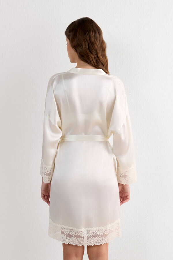 elegante e raffinato kimono in seta con bellissimi volant in pizzo.