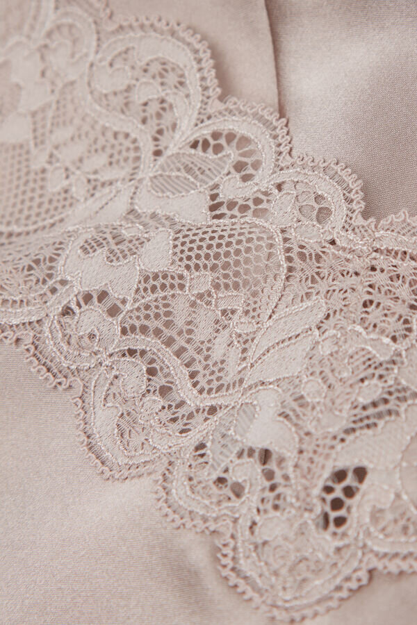 top in seta con scollo a V e spalline sottili regolabili, impreziosito da dettagli in pizzo sullo scollo e sull’orlo. perfetto come lingerie e sotto una giacca. La modella è alta 175 cm e indossa la taglia S.
