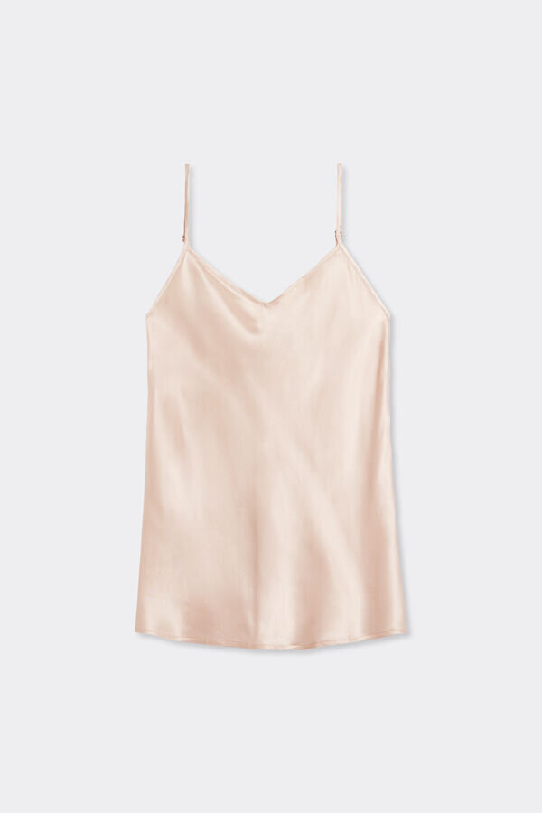 top in raso di seta con scollo a V davanti e dietro. spalline sottili regolabili.