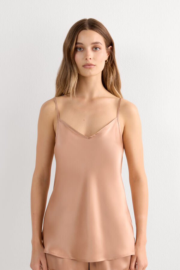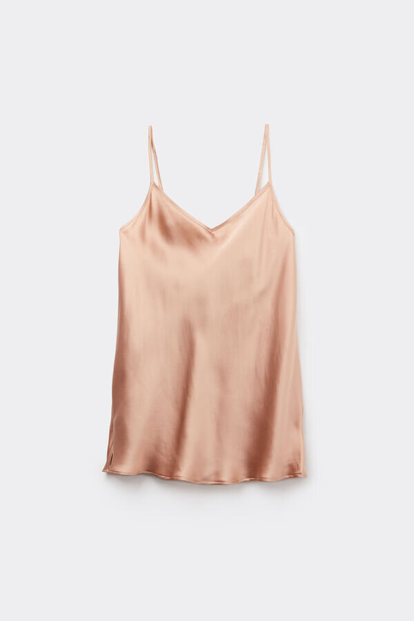 top in raso di seta con scollo a V davanti e dietro. spalline sottili regolabili.