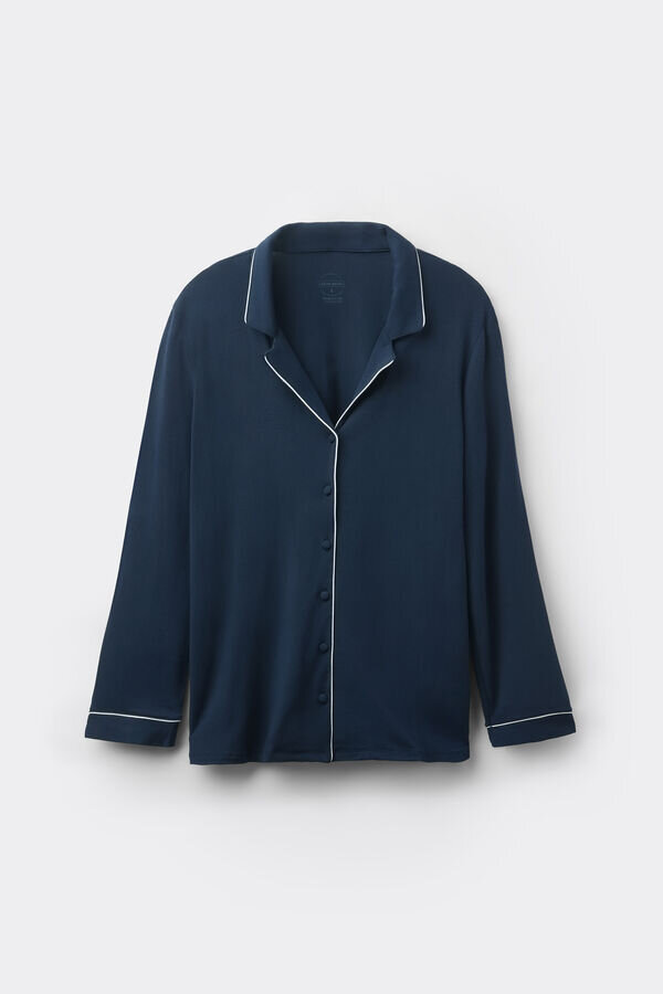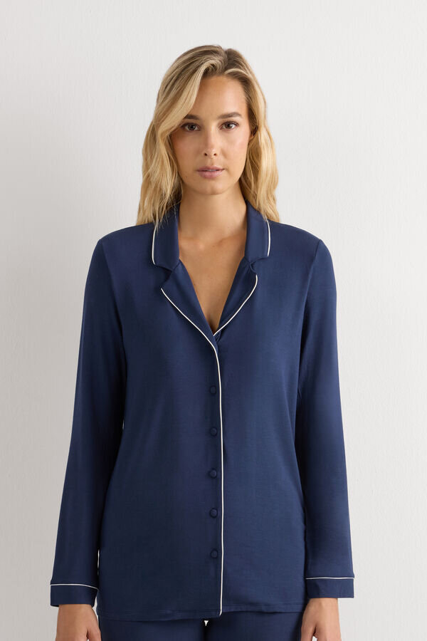 top pigiama in micromodal a maniche lunghe. Caratterizzato da dettagli in raso a contrasto.