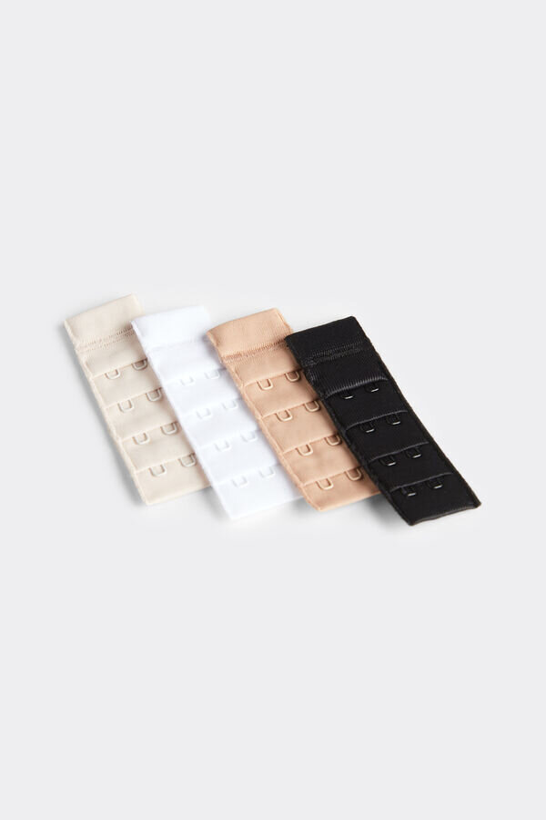ganci regolatori che consentono di allungare la fascia sottoseno del reggiseno per soddisfare le esigenze di chi ha una circonferenza toracica maggiore rispetto al busto. all’interno della confezione sono presenti quattro pezzi alti due ganci in quattro colori: bianco, nero, beige chiaro, rosa seta. articolo disponibile in taglia unica.