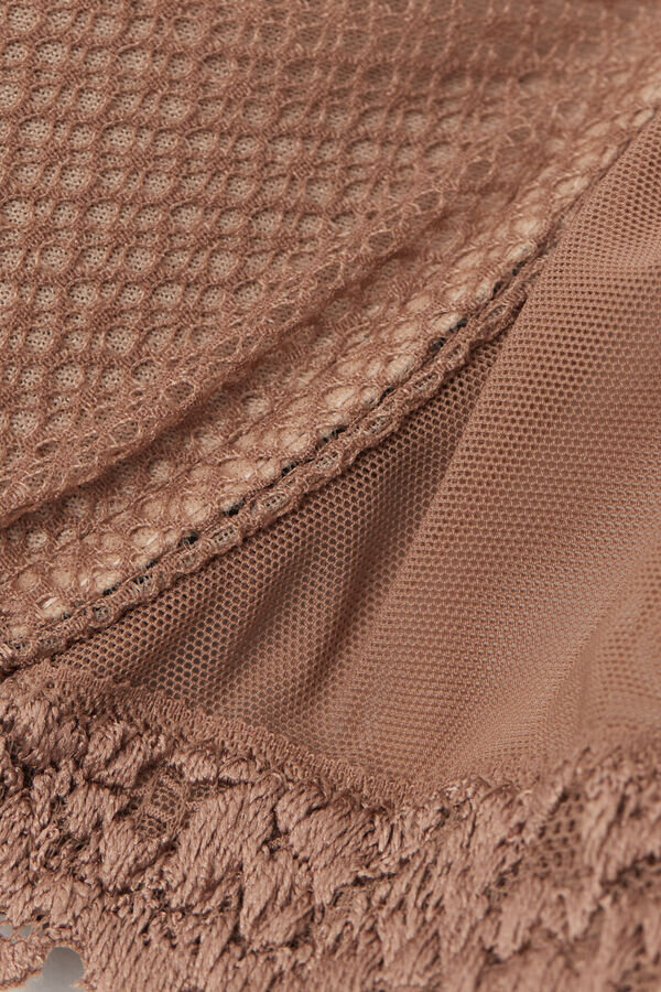 reggiseno balconcino Giorgia con ferretto e coppe con imbottitura graduata che crea un effetto volume di una taglia in più. È realizzato con un pizzo elasticizzato sofisticato ed elegante che presenta ricami floreali tono su tono o in contrasto di colore, a seconda della versione presentata. La profonda scollatura a V smerlata enfatizza il décolleté e lo rende il reggiseno ideale per chi cerca uno stile romantico ma sensuale.