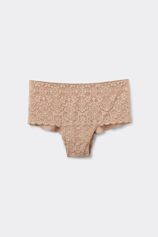 slip in morbido pizzo elasticizzato, senza cuciture sui fianchi e sul retro per adattarsi al corpo senza lasciare segni. Design confortevole dallo stile romantico e femminile.