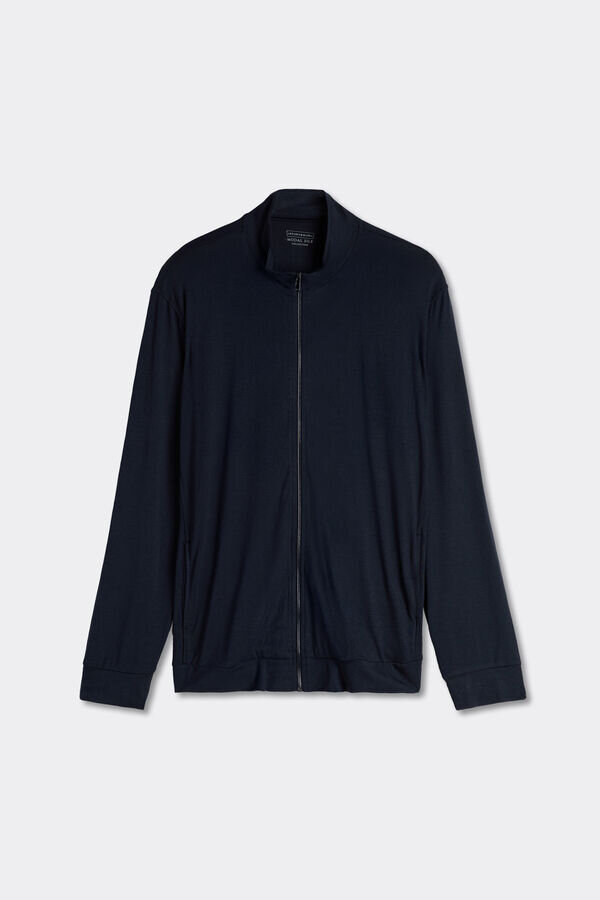 felpa da uomo a maniche lunghe in seta e modal con zip frontale e tasche.