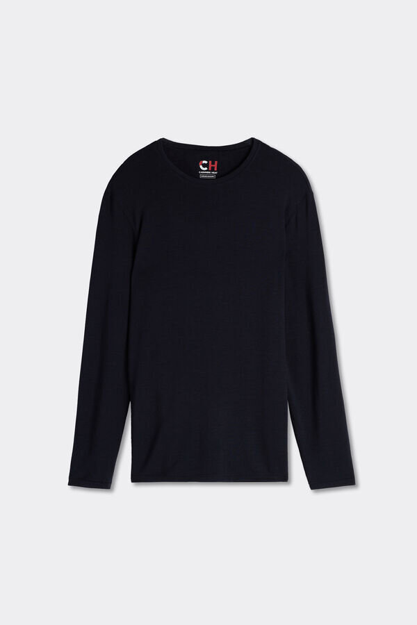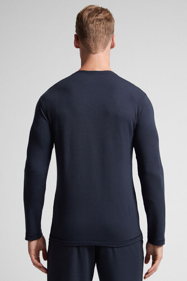 maglia da uomo a maniche lunghe e collo rotondo in misto modal-cashmere. incredibilmente morbida e confortevole. il modello è alto 185 cm e indossa la taglia l. in vendita nei negozi Intimissimi man.